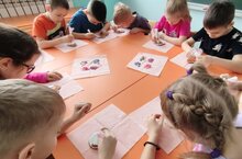 Для развития творческих способностей дети выполнили творческую работу "Снегири".