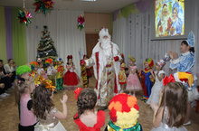 Зима принесла с собой долгожданные, всеми любимые, новогодние праздники. Все в детском саду, и взрослые и дети, окунулись в атмосферу предпраздничной суеты: оформление групп, разучивание стихов, песен… Самыми первыми к нарядно украшенной елке пришли наши малыши, где и произошла волшебная встреча с Дедом Морозом и Снегурочкой, а также Лисичкой и Зайчиком. Детки с удовольствием пели песни, плясали и даже порадовали Деда Мороза стишками. Ну, а Дед Мороз порадовал деток подарками. Какой же чудесный праздник- Новый год!