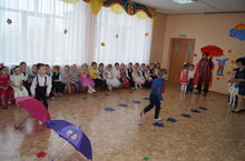 Сегодня в ДОУ прошел праздник осени в средней национальной и старшей группах. В гости к детям пришла Осень. Но потом неожиданно появилась Слякоть и заколдовала Осень. Дети не расстерялись и своими песнями, танцами, играми смогли вернуть Осень на праздник. В конце праздника Осень щедро одарила детей своими гостинцами.