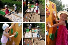 В летний оздоровительный сезон в нашем детском саду функционирует сенсорная площадка. На ней расположена тропинка здоровья, которая является отличным развлечением для детей. Когда, если не летом, ходить босиком по траве, песку, камешкам — это не только весело, но и полезно для здоровья. О том, что массаж стоп очень полезен – знают все. Ведь на подошвах находятся нервные точки, отвечающие за общее состояние здоровья человека. Чтобы поддерживать нормальную работу всех органов, надо стимулировать и активные точки на стопах. Особое внимание такому воздействию нужно отводить в дошкольном возрасте. Также на площадке имеются тактильные рукавички здоровья, предназначены они для развития осязания и тактильного восприятия при чередовании поверхностей (например, от твердой к мягкой и от шершавой к гладкой). Дети учатся оценивать собственные эмоции и соотносить их с восприятием окружающих, рассказывать о своих ощущениях и делиться впечатлениями.