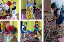 В детском саду трудовое воспитание заключается в ознакомлении детей с трудом взрослых, в приобщении воспитанников к доступной им трудовой деятельности. В процессе ознакомления с трудом взрослых у ребят формируется положительное отношение к их труду, бережное отношение к его результатам, стремление оказывать взрослым посильную помощь. Хозяйственно-бытовой труд - это вид труда, который ребенок в дошкольном возрасте способен освоить. Содержанием этого вида труда являются: труд по уборке помещения, уборке посуды. Если труд по самообслуживанию исходно предназначен для жизнеобеспечения, для заботы о самом себе, то хозяйственно-бытовой труд имеет общественную направленность. Ребенок учится создавать и содержать в соответствующем виде окружающую его среду. Навыки хозяйственно-бытового труда ребенок может использовать и в самообслуживании, и в труде на общую пользу. Так воспитанники старшей группы под руководством Зелепугиной Тамары Васильевны привели в порядок свою раздевалку.