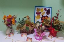 С 16 по 20 сентября в фойе первого этажа детского сада проходит выставка семейных поделок «Осенний букет». Здесь представлены работы воспитанников всех возрастных групп. Родители тоже стали активными участниками, но главные идеи принадлежали детям! Были созданы замечательные работы из листьев, цветов и другого природного материала. Выдумка, творчество, фантазия, восторг и удивление! Настоящее великолепие красок! Вот уж действительно осеннее чудо!
