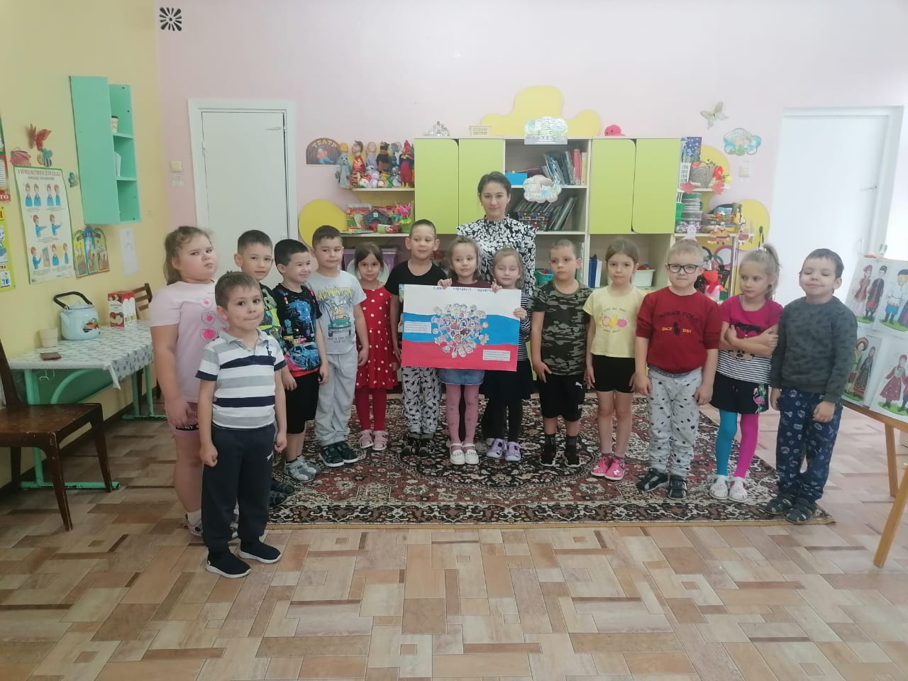 В предверии праздника "Дня народного единства" в подготовительных к школе группах прошли занятия, посвященные этой памятной дате. С ребятами провели беседу, рассказали о том, как появился праздник в нашей стране. Целью занятия стало закрепление представлений о том, что наша страна огромная, многонациональная; воспитание уважения к другим народам и культурам. Занятие завершилось коллективной работой по изготовлению плаката ко Дню народного единства.