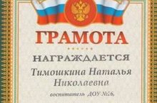 За многолетний добросовестный труд, большой вклад в дело обучения и воспитания подрастающего поколения Тимошкина Наталья Николаевна награждена грамотой Управления образования ИК МО "Лениногорский муниципальный район"
