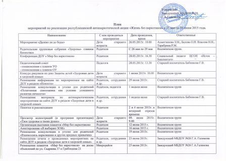 План мероприятий по реализации республиканской акции "Жизнь без наркотиков"