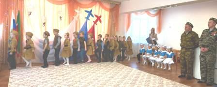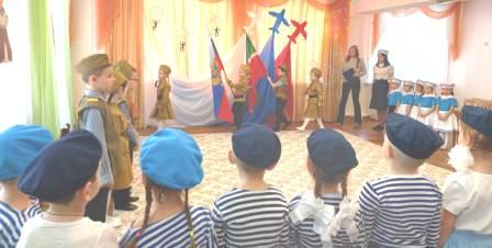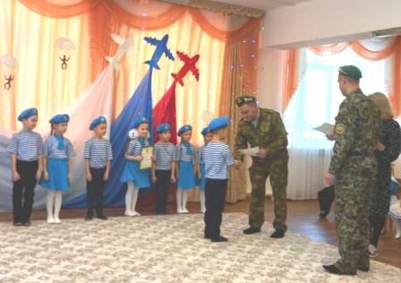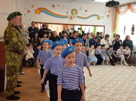 Воспитанники средней, старшей и подготовительной к школе групп показали отличную подготовку строя, маршировки, исполнения строевой песни. Праздник закончился награждением отряда «Голубые береты» грамотами Управления образования и благодарственными письмами детского сада групп, принимавших участие в празднике.