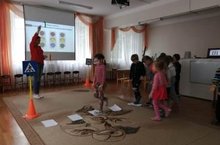 В детском саду прошло развлечение для детей «День светофора» К воспитанникам в гости пришел Веселый Светофорик, который принес детям много интересных и познавательных игр. Затем все посмотрели увлекательный мультфильм «Уроки Веснушки».