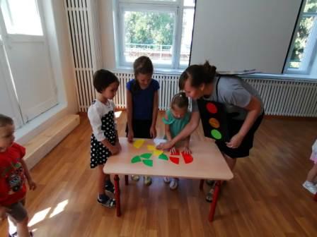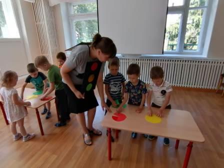 Также организовали игру по ПДД "Красный, желтый, зеленый", где показали знания правил перехода улицы по требованию сигналов. Просмотрели мультфильм про правила дорожного движения. Затем девочки и мальчики слепили из пластилина светофорчики. Юные участники дорожного движения обещали всегда быть внимательными и соблюдать правила безопасности на улице.
