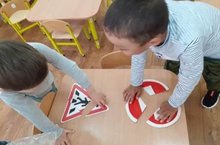 В рамках тематической недели мы в игровой форме закрепили знания детей о ПДД, дорожных знаках. Ребята смотрели обучающий фильм, мультфильм, играли в игру "Собери знак", рисовали дорожные знаки.