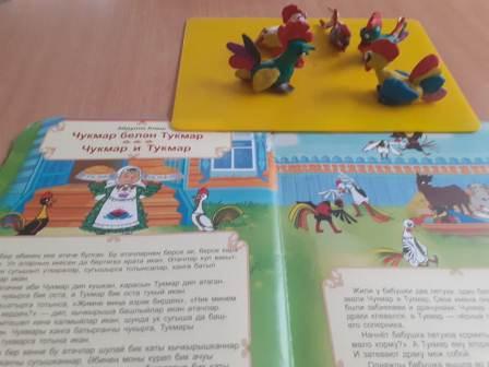 Развлечение "Я люблю татарские сказки" было проведено воспитателем по обучению татарскому языку Резяповой Э.М. Дети вместе с воспитателем вспомнили какие татарские сказки они знают. Инсценировали сказку и полученные впечатления выразили в рисунках и поделках.