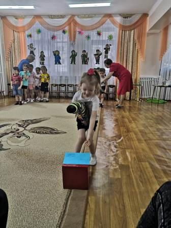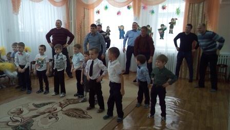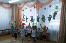 В средней, старшей и подготовительной группах прошли развлечения «День защитников отечества». Дети рассказывали стихи, пели песни, танцевали и принимали участие в совместных эстафетах с папами: «Конники-наездники», «Переход через минное поле», игра с канатом «Связисты» и другие.