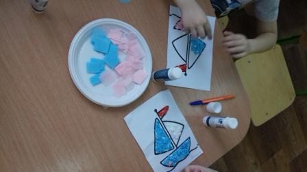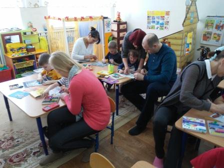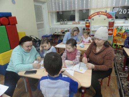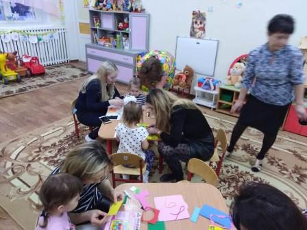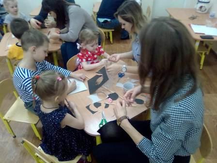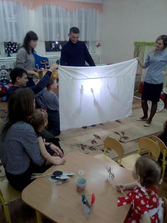 В первой младшей группе дети и родители выполняли аппликацию без ножниц и клея, во 2 младшей группе были сделаны атрибуты к теневому театру, и проиграны сказки. Дети средней группы вместе с родителями с удовольствием рисовали зимние пейзажи нетрадиционным способом и материалом - манкой. В подготовительной группе дети и родители создали красивые композиции из цветов с помощью гофрированной бумаги