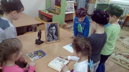 Никого из присутствующих не оставил равнодушным просмотр мультфильма, основанный на трех стихотворениях Мусы Джалиля - «Праздник матери», «Соловей и ручей» и «Красные ромашки», в которых поднимаются темы материнской любви, войны и долга. Дети прослушали песню на стихи великого поэта «Петух». В конце мероприятия воспитанники нарисовали рисунки на запомнившиеся им произведения.
