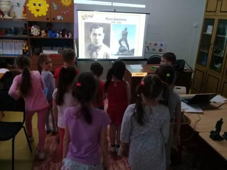 В детском саду был организован досуг «Муса Джалиль - друг детей» с детьми старшей и подготовительной группы. В ходе мероприятия дети узнали об интересных фактах из жизни поэта, его непростых детских и юношеских годах, литературной деятельности, о том, как он воевал и попал в плен. Все мероприятие сопровождалось показом презентации «Муса Джалиль - герой - поэт». Ребята узнали о суровых фронтовых буднях поэта, о страшном времени, проведенном в фашистских застенках концлагерей, в которых единственным оружием Мусы Джалиля были его стихи.