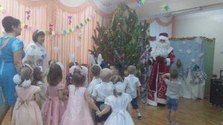 Воспитанники детского сада заранее готовились к встрече с Дедом Морозом и Снегурочкой. Подготовка началась задолго до наступления праздников. Воспитатели с детьми разучивали стихотворения, проводили беседы на тему Нового года, новогодних традиций. Музыкальный руководитель разучивали с детьми песни, хороводы и танцы. Сотрудники ДОУ провели огромную работу по оформлению групп и музыкального зала. С 26 по 28 декабря в детском саду состоялись Новогодние утренники. Все дети пришли на утренник нарядные, весёлые, в карнавальных костюмах и с нетерпением ждали новогоднего чуда, и их надежды оправдались. С самого начала представления сказочные герои увлекли малышей в волшебный мир сказки и волшебства, дети смогли окунуться в праздничную атмосферу приключений. С появлением Деда Мороза начался настоящий праздник с песнями и танцами, хороводами и играми. В конце утренника все дети получили долгожданные подарки от Деда Мороза и Снегурочки. Праздник доставил всем присутствующим радость и хорошее настроение.