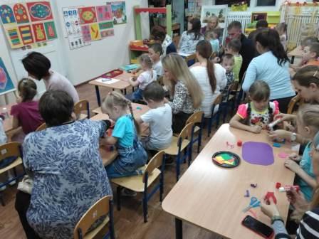 Во 2 младшей группе дети лепили сказочного героя - колобка. В средней группе воспитанники совершили прогулку в сказочный лес и слепили грибочки. В старшей группе дети угощали кукол чаем и лепили «Чайный сервиз». В подготовительной группе воспитанники вспомнили своих любимых животных и вылепляли их, с огромным удовольствием добавляя в работе характерные детали, например крокодилу большие зубы и наросты на спине и хвосте, жирафу пятнышки и рожки, ежику иголки и яблочки на спинку.