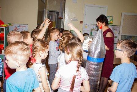 В детском саду прошло тематическое занятие, посвященное Дню космонавтики. Дети подготовительной группы узнали много нового о звездах и планетах, о Ю.А. Гагарине - первом человеке, побывавшем в космосе, и сами попробовали себя в роли космонавтов.