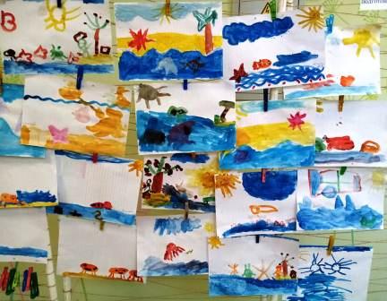 В старшей группе прошел тематический день "Путешествие по морю". Ребята знакомились с морскими обитателями, необычными растениями и водорослями. С удовольствием играли в сюжетно-ролевую игру "Путешествие на корабле". Свои впечатления дети отразили в продуктивной деятельности - рисовании.
