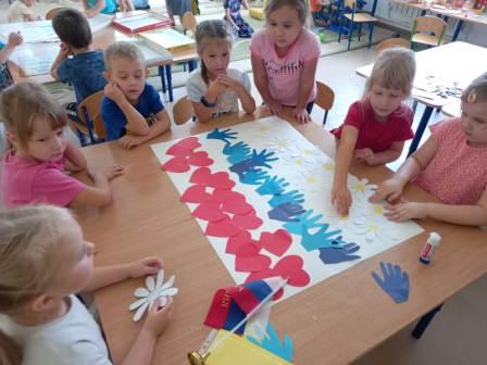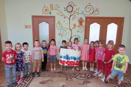 С детьми была проведена познавательная беседа" Флаг моей страны, а в творческой мастерской воспитанники оформили коллективную работу, закрепляя свои знания в продуктивных видах деятельности. Все ребята почтительно и с уважением относятся к символам нашей страны, растут патриотами, и любят свою Родину. -
