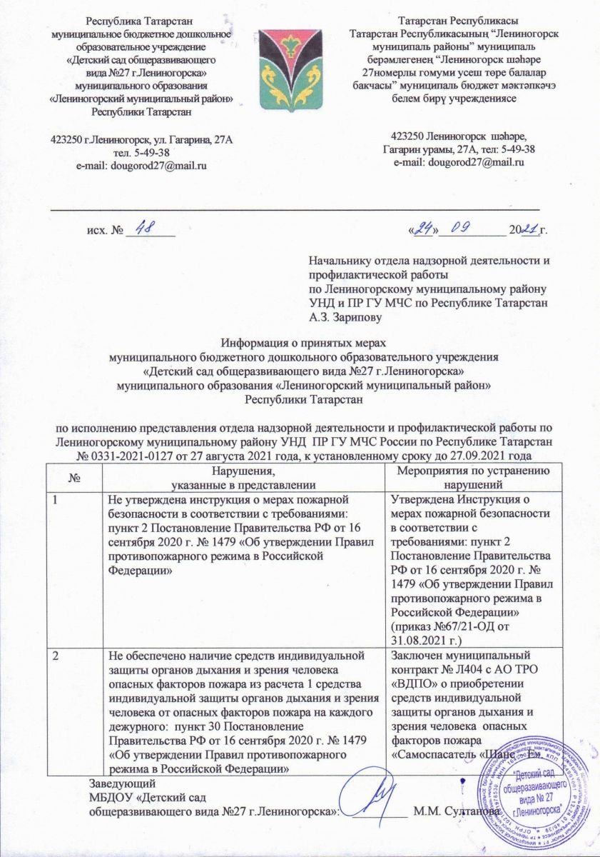 муниципальное бюджетное дошкольное образовательное учреждение «Детский сад общеразвивающего вида №27 г.Лениногорска" муниципального образования "Лениногорский муниципальный район" Республики Татарстан / Татарстан Республикасының "Лениногорск муниципаль районы" муниципаль берәмлегенең "Лениногорск шәһәре 27 номерлы гомуми усеш төре балалар бакчасы" муниципаль бюджет мәктәпкәчә белем бирү учреждениесе