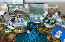 В детском саду был организован и проведен конкурс поделок по просмотренным мультфильмам УМК. Целью данного мероприятия стало приобщение детей дошкольного возраста к татарским сказкам и мультфильмам. Ребята трудились над поделками не одни, а вместе со своими родителями. Поделки получились очень красочными и интересными. Победителей выберут с помощью народного голосования.