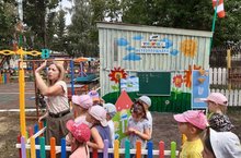 26 августа для воспитанников средней группы стал необычным днем. Ребята вместе с инструктором по физкультуре отправились на поиски клада. Действие разворачивалось на прогулочном участке и спортивной площадке. На пути у ребят, во время поиска клада, встала Баба Яга, которая всячески мешала ребятам и соревновалась с ними в быстроте, силе и ловкости. Несмотря на все проказы Бабы Яги, ребята отыскали клад, и получи море удовольствия от мероприятия.