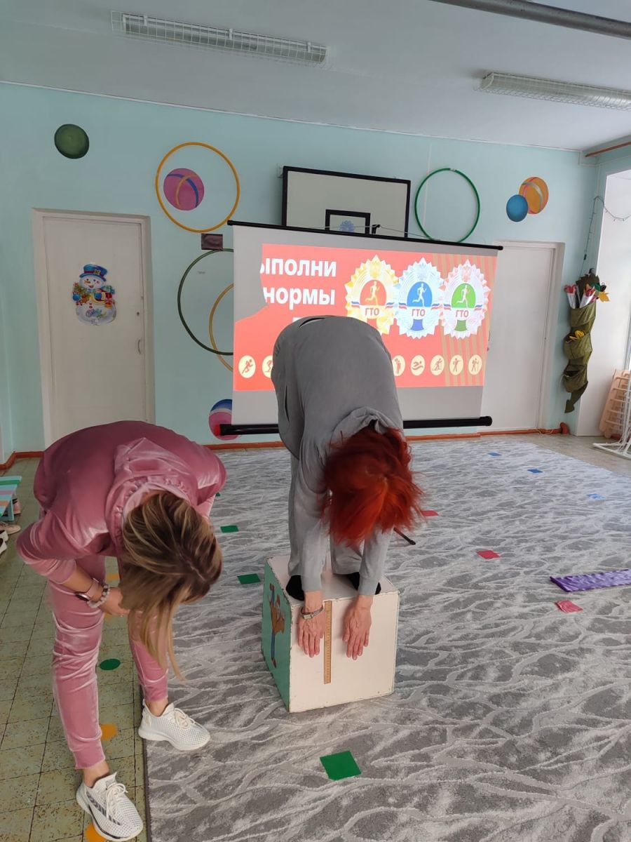 Сегодня педагоги МБДОУ 29 сдали нормативы ГТО. Воспитатели проверили свою гибкость, сдав наклон вперед из положения стоя на гимнастической скамье. Выполнили поднимание туловища из положения лежа на спине (количество раз за 1 мин), сгибание и разгибание рук в упоре лежа на полу и прыжок в длину с места толчком двумя ногами. Все участники показали хорошие результаты и доказали, что они являются примером для своих воспитанников.