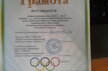 Наша воспитанница Семёнычева Снежана заняла 2 место по метанию мяча вдаль. А команда ДОУ, состоящая из 6 воспитанников(Семёнычева Снежана, Базанова Настя, Бабенкова Юля, Кульдюшов Ваня, Циберкин Кирилл, Кузнецов Мантвей), заняла почетное 5 место и была награждена грамотой.