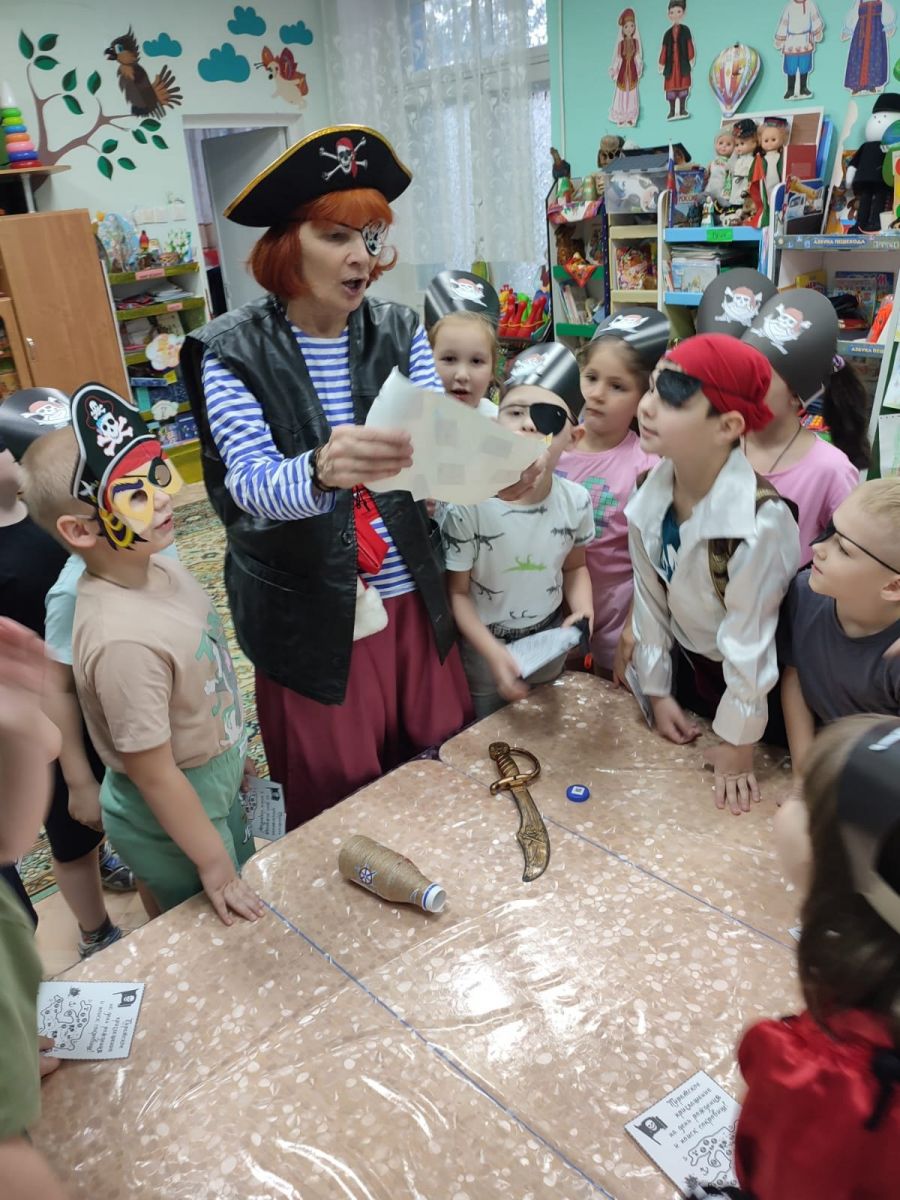 И вот в среду состоялась пиратская вечеринка. Появились гроза морей пираты ,они решили набрать свою команду для поисков сокровищ. Ребята с огромным удовольствием согласились помочь пиратам. Юным пиратам предстояло пройти испытания. Маленькие пираты показали отличные умения в испытаниях смелость, отвагу. Все участники получили заряд положительных эмоций, а на память дети получили свидетельства настоящих пиратов..jpg)