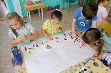 В конце беседы: коллективная работа "На грибной полянке".,где ребята в своих работах использовали разные виды техники рисование, тычкование аппликация. -