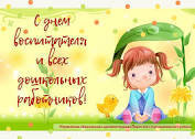 Дорогие воспитатели, нянечки, все работники нашего детского сада! Поздравляем вас с профессиональным праздником! Вашу помощь в воспитании наших детей трудно переоценить. Благодаря вам они всегда окружены вниманием, заботой и теплом, даже когда родители заняты на работе. Такой труд не может быть формальным — нужно на самом деле любить всех малышей — и послушных, и капризных, и весёлых, и плакс... У вас прекрасные добрые сердца и бесконечное терпение. Здоровья вам и благополучия, будьте счастливы и на работе, и дома, огромное вам спасибо, и с праздником!