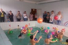 Занятия начались с разогревающих упражнений "на суше". Затем ребята по-очереди по лесенке спустились в бассейн. Все ОД проходили в игровой форме, с различными спортивными атрибутами. Дети и их родители были в восторге!