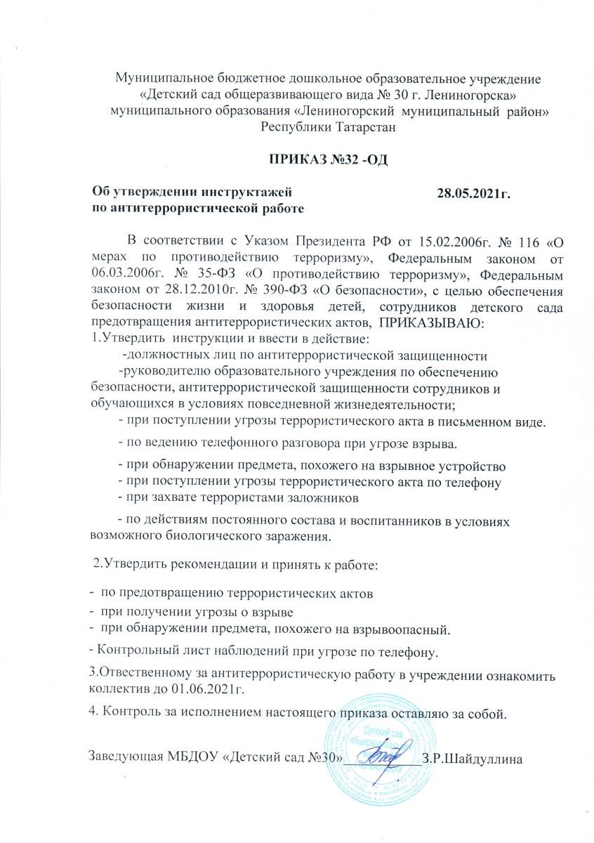 Приказ об усиление режима антитеррористической безопасности МБДОУ
