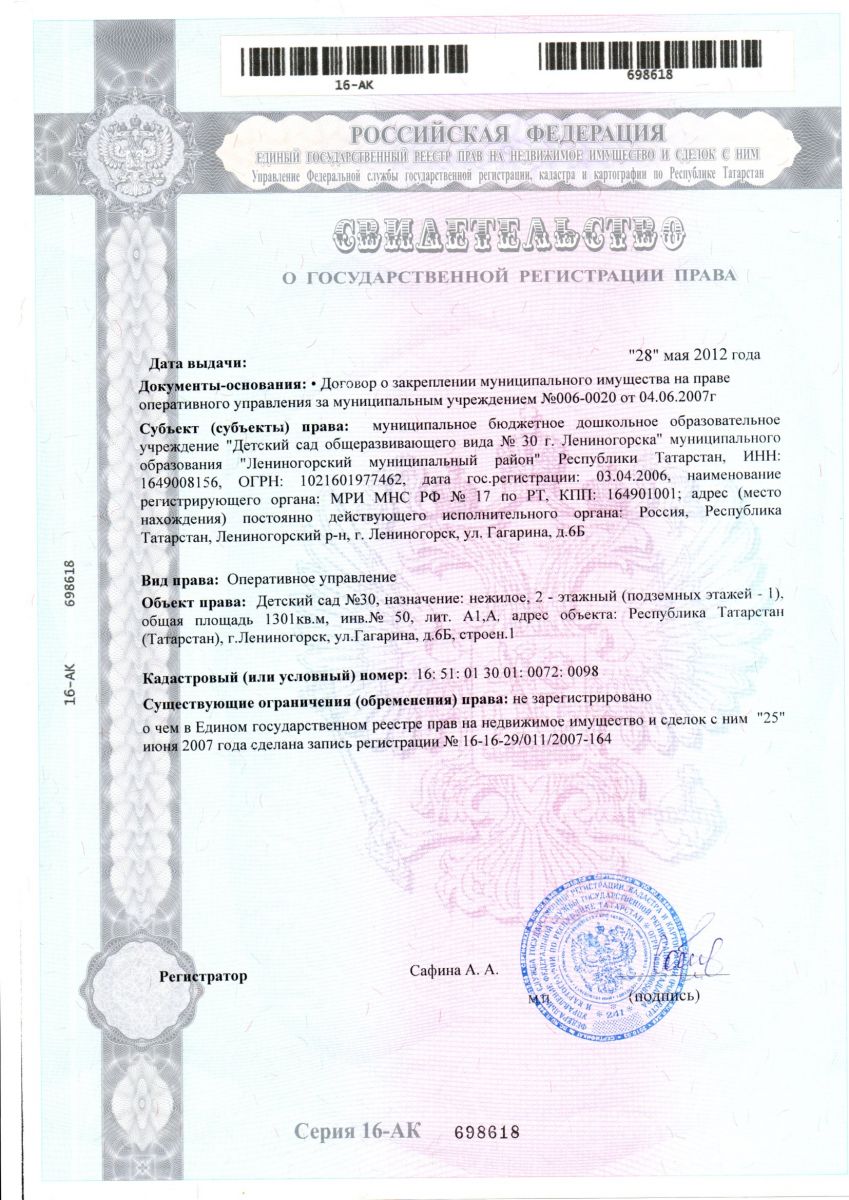 МБДОУ "Детский сад общеразвивающего вида №30 г. Лениногорска" муниципального образования "Лениногорский муниципальный район" Республики Татарстан