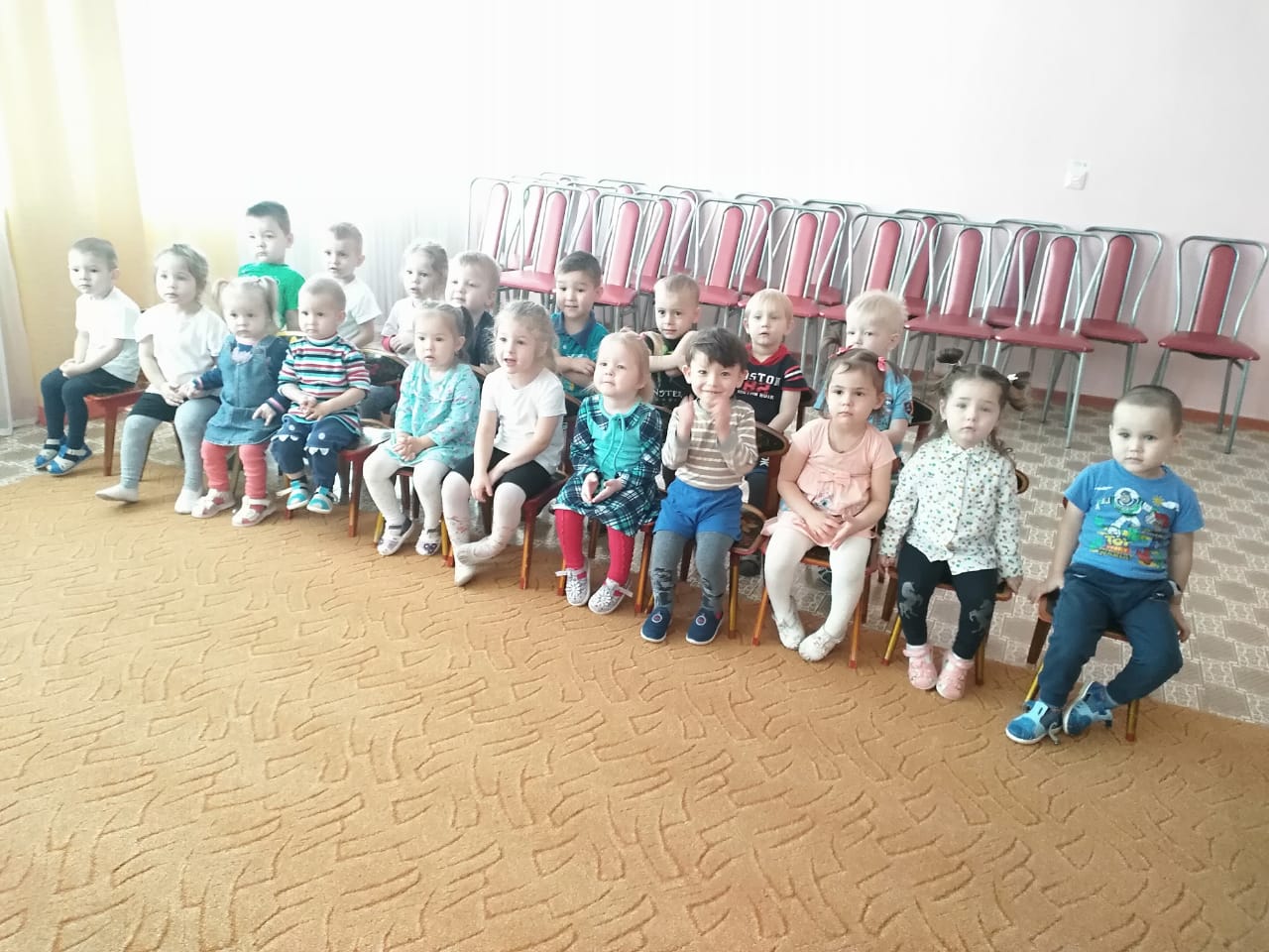 В рамках тематической недели театра воспитанникам I и II младших групп показали кукольный спектакль «Теремок». В качестве «артистов спектакля» выступили воспитатели младших групп детского сада — они показали живое и красочное представление по всем известной сказке «Теремок». Дети живо и с интересом встречали героев, сопереживали и радовались за них, а в конце малыши наградили героев громкими аплодисментами.