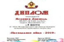 Поздравляем Ясавиева Даниэля призера 1 этапа Международного фестиваля - конкурса декоративно-прикладного творчества "Пасхальное яйцо - 2019".