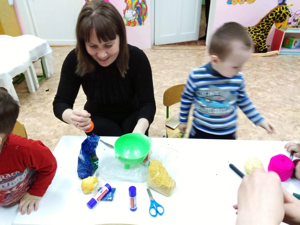 В первой младшей группе воспитатель Садыйкова А.А. реализовала совместный творческий краткосрочный проект "Главное - мы вместе". Итоговым мероприятием проекта стала совместная творческая деятельность родителей и детей "Капитошка".
