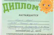 Сегодня, на базе МБДОУ № 7 прошла муниципальная Олимпиада по татарскому языку среди воспитанников дошкольных образовательных организаций. Наш детский сад на Олимпиаде представил воспитанник подготовительной к школе группы Андреев Андрей (руководитель: Ахмадиева Э.М., воспитатель по обучению татарскому языку) , где занял II место. Поздравляем Андрея с победой и желаем ему дальнейших успехов!!!
