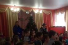 Сегодня воспитанники нашего детского сада попрощались с Ёлкой ещё на один год. В гости к детям пришли лиса Алиса, кот Базилио, кошка Забияка и конечно сам Дед Мороз.