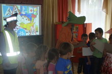 В рамках реализации месячника безопасности по ПДД "Внимание, дети", в детском саду сегодня прошло итоговое мероприятие для детей "Незнайка в стране дорожных знаков". В гости к детям приходили Незнайка и сотрудник ДПС.