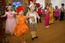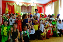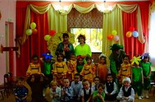 29.10. в старшей группе прошло театрализованное представление "Веселая Огородия" с участием тётушки Слякоть и красавицы Осень. Дети выступали в роли овощей и фруктов.