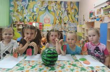Во всем мире 3 августа празднуют День арбуза. Яркий и вкусный день - День рождения арбуза отметили и ребята старшей совместно с подготовительной группой. Герой дня - большая и сладкая ягода, которая созревает на бахчах и является воплощением самого лета. Педагоги рассказали детям об истории арбуза, что его родиной является Южная Африка, где он и до сих пор встречается в диком виде! Так же ребята узнали о полезных и вкусных качествах этой ягоды, отгадывали загадки, поиграли в игру, сделали аппликацию "Арбуз"