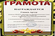 На базе МБДОУ№14 прошла муниципальная спортивно-патриотическая квест-игра «ЗАРНИЧКА» для детей старшего дошкольного возраста. В соревнованиях приняли участие 15 команд ДОУ. Наш воспитанник подготовительной к школе группы Ганиев Артур стал победителям занял I место. Поздравляем Артура и его преподавателей. МОЛОДЦЫ!