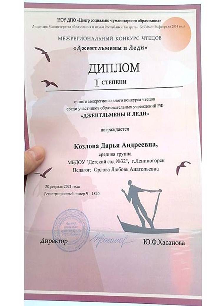учреждений РФ «Джентльмены и леди». Нашу воспитанницу Дарью Козлову наградили и