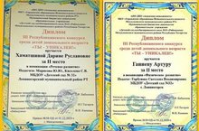 Прошел Республиканский конкурс среди детей дошкольного возраста «Ты – уникален!» с целью выявления и открытия для общественности уникальных способностей детей в различных образовательных областях: «Познавательное развитие»; «Cоциально-коммуникативное развитие», «Речевое развитие», «Художественно-эстетическое развитие», «Физическое развитие». Наши педагоги вместе с воспитанниками занявшие призовые места.
