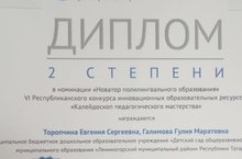 Поздравляем воспитателя по обучению английскому языку Торопчину Евгению Сергеевну и воспитателя по обучению татарскому языку Галимову Гулию Маратовну с победой в Республиканском конкурсе инновационных образовательных ресурсов "Калейдоскоп педагогического мастерства".