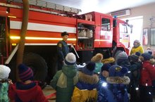 Огромный восторг вызвала у ребят подготовительной группы №2 экскурсия в пожарную часть №11 нашего города. Ребятам подробно рассказали о работе пожарного, показали пожарную машину, необходимый инвентарь для тушения пожара, повторили с ребятами правила пожарной безопасности.
