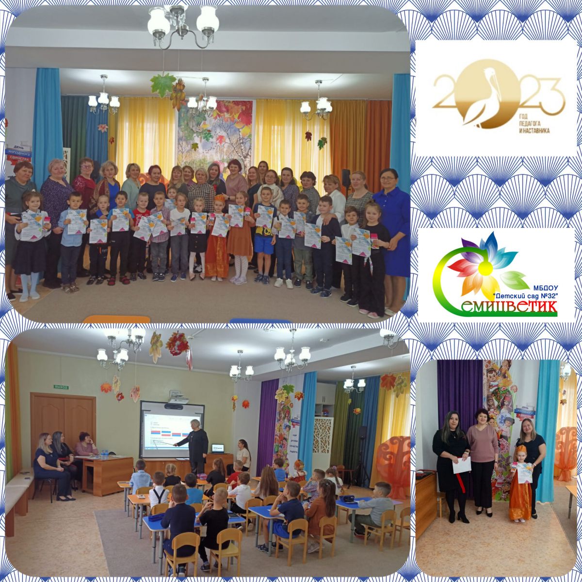 2023 елның 20 ноябреннән 24 ноябренә кадәр мәктәпкәчә учреждениенең барлык яшь төркемнәренең балалары һәм ата-аналары (законлы вәкилләре) белән педагог-психолог Самарина а.ю. һәм ДОУ педагоглары белән балалар бакчасында уңайлы психологик атмосфера булдыру; өлкәннәрнең бала дөньясына кызыксынуын формалаштыру, аңа индивидуаль-шәхси үсештә ярдәм итәргә омтылу максатыннан "Сәламәт гаилә" Бөтенроссия психология атналыгы үткәрелде; ата-аналарны һәм педагогларны психологик яктан агарту.