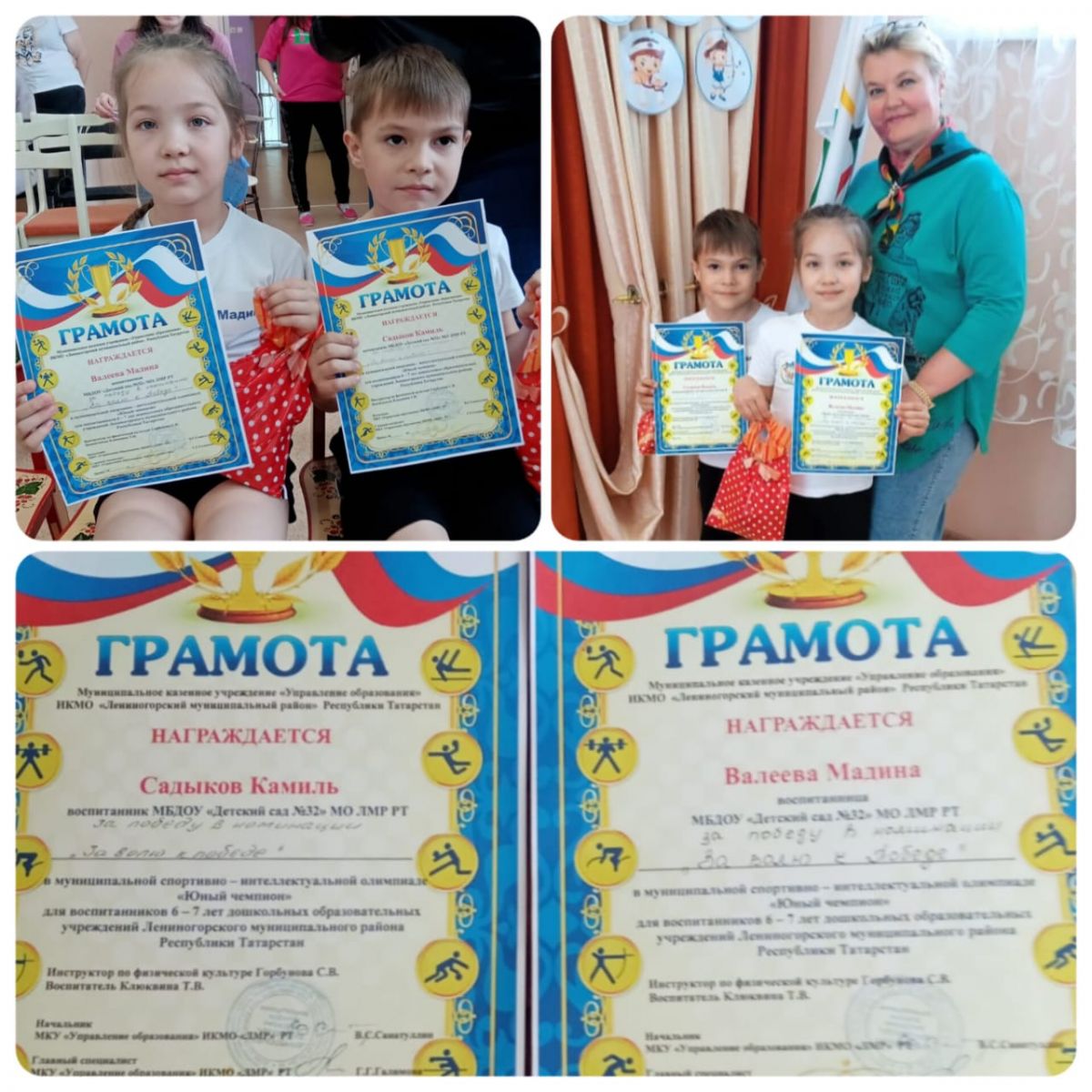 5 майда 7 нче балалар бакчасында муниципаль спорт-интеллектуаль «Яшь чемпион»олимпиадасы үткәрелде. Безнең балалар бакчасын мәктәпкә әзерлек төркеме «Йолдызчык» группасында тәрбияләнүче Садыйков Камил һәм Вәлиева Мәдинә якладылар. Балалар матур чыгыш ясап, яхшы нәтиҗәләр күрсәттеләр, шуның өчен«Җиңүгә омтылыш өчен»номинация грамоталары белән бүләкләнделәр. Яшь чемпионнарыбызны һәм инструкторыбыз Горбунова Светлана Владимировнаны котлыйбыз.