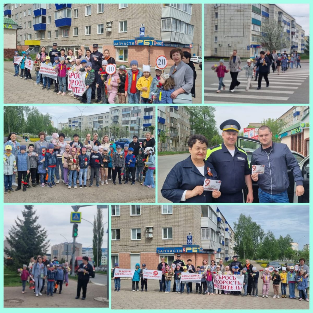 5 мая в нашем детскогом саду проведена акция "Мирные дороги - безопасные дороги" с участием детей группы "Звездочки", родителей, педагогов, Рахмановой З.М. начальником отделения профилактики ГБУ "БДД" в Лениногорском районе Территориального управления в г.Альметьевск РТ, Кирдяновой Э.С., главного специалиста по профилактике БДД в Лениногрском районе. Все участники акции призывали водителей к соблюдению ПДД. Транспаранты и плакаты в руках детей придали особую значимость мероприятию.